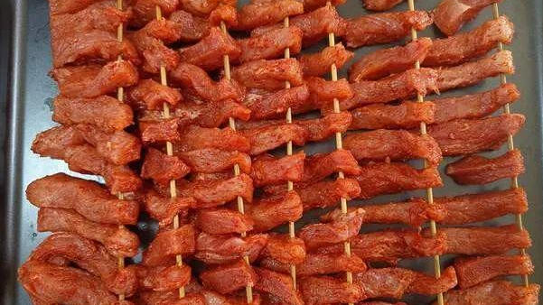 腌制好后,将肉条串上竹签,然后挂在通风良好的地方,最好是气温低有太阳的天气,晒1-2天,猪肉条就能干。一般来说,风干的时间需要根据天气和环境而定,通常需要几天到一周的时间。
